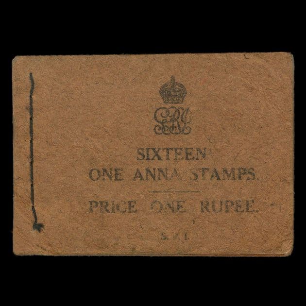 India - Booklets, 1911, SGSB4bKGV 1R. Booklet black on pink, without Post Office of India, showing KGV Royal Cypher incomplete (includes 2 x Panes of 4 1a. Stamps) S.G. catalogue value £1,100= if complete). Rarely offered. None found offered online complete or incomplete. SG Catalogued £1,100= with 4 x Panes of 4 stamps). Imperfections but RARE (1. incomplete Booklet, 2 panes) (UPA CERTIFICATE)