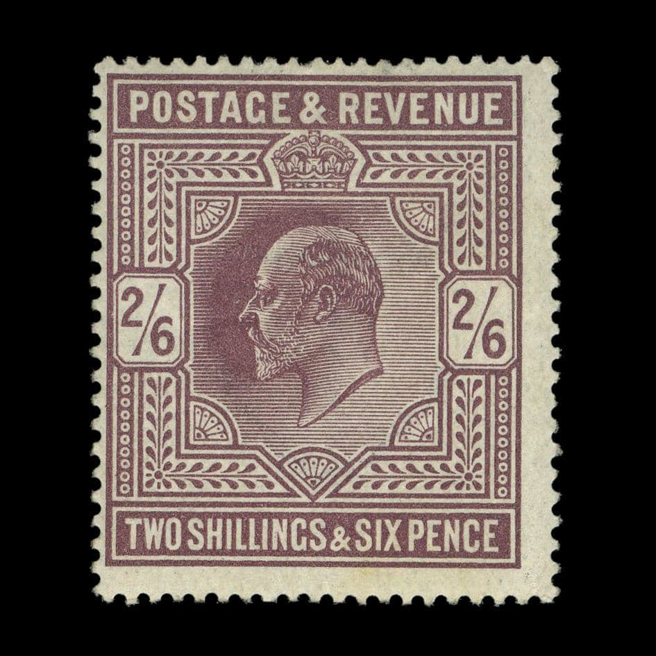 Great Britain - KEVII, 1911-1913, SG316KEVII Somerset House Printing 2/6d. Dull Reddish Purple fine to very fine mint full original gum example, particularly fine colour centred N.W. well clear of design, reverse minor gum wrinkling no trace of previous hinging, an apparently unmounted mint never hinged example conservatively priced. Value (1v.) (UPA CERTIFICATE)