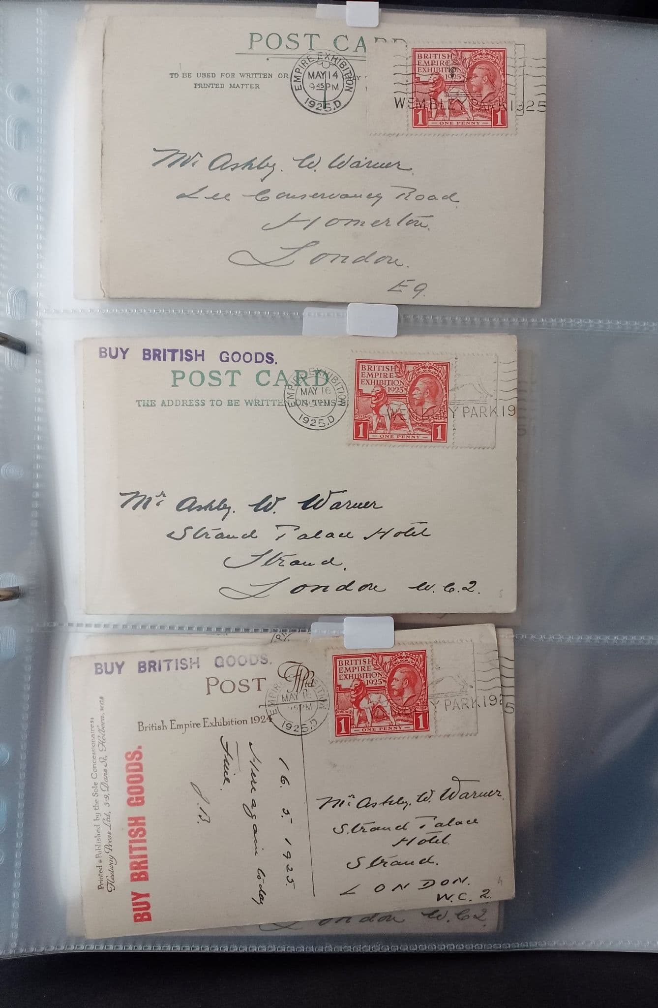 218 images: TWO VOLUME 1925 WEMBLEY Unique Philatelic & Social History Collection. I'm not going to say too much about this collection because, I think the 218 images should tell the story. Although I cannot recall seeing anything that specifically reveals the originator to my mind this collection was painstakingly put together, card by card, by a British War Veteran, possibly disabled. The clues are there, and perhaps more to be deduced The addresses vary, just how was the collection put together. Then there's the strong patriotic messages, copious articles/clippings/images on the reverse of the cards Generally fine to very fine. As you know the 1925 is the much better/scarcer Wembley Series, and these are popular amongst the 'Exhibitions' collecting fraternity I think I worked it out at something like £11.50 a card at the full GBP£3,750= starting price but I may be wrong. Worth checking for even though £3,750= is a lot of money this does not feel expensive.